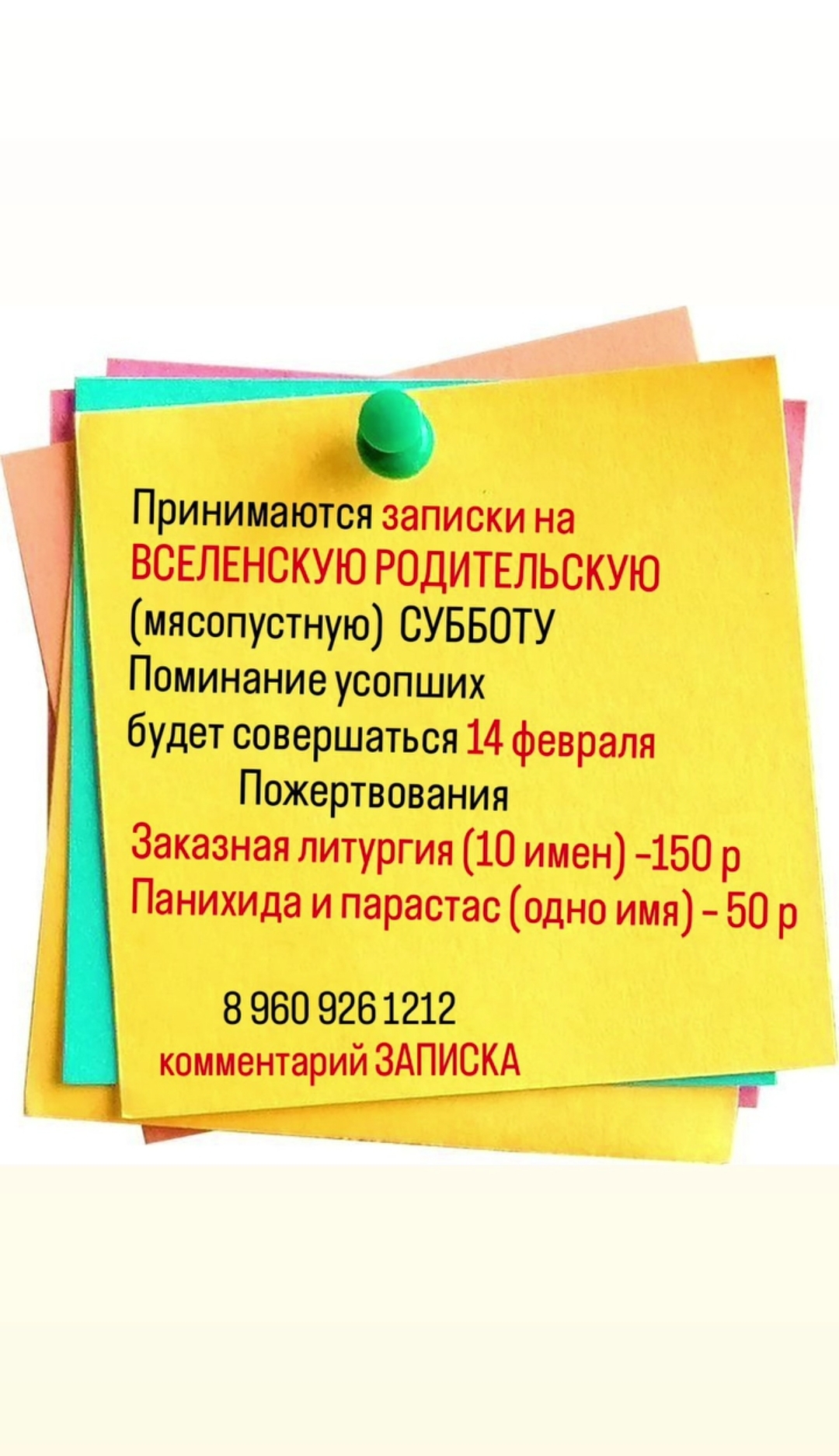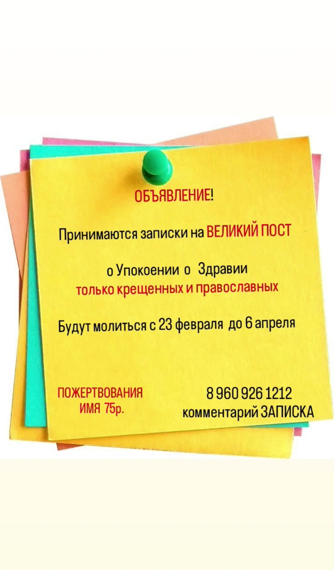 Постовые записки о упокоении в Великий Пост помощь душам усопших сродников, друзей, благодетелей. 2-я, 3-я и 4-я субботы особые, сугубые, поминальные дни называемые родительскими. Проявляя поминальное попечение о ближних, мы оказываем не только поддержку им, но и приносим пользу своим душам. У Господа нет разделения на живых и усопших, у Него все живы. Подавая постовые записки, совершая церковное поминовение, совершается исполнение заповеди Божьей: относись к другим так же, какого отношения ты хочешь к себе.